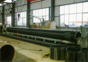 我公司用引進的高壓成套聚氨酯發(fā)泡設備生產的三位一體直埋保溫管整體性能優(yōu)良、嚴格執(zhí)行鋼管外表面拋丸除銹處理和外護管內表面電暈處理工藝,進一步提高保溫管的粘接性能。